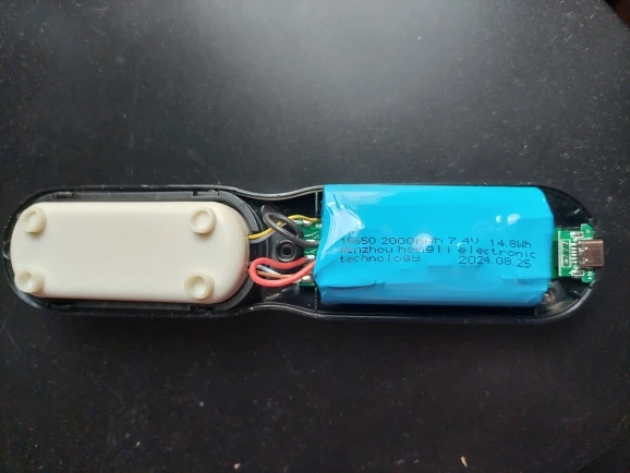Rechargeable battery powering the unit; charging cable and exact charge time depends on supplied accessory — please refer to product packaging or manual for specific charging instructions.